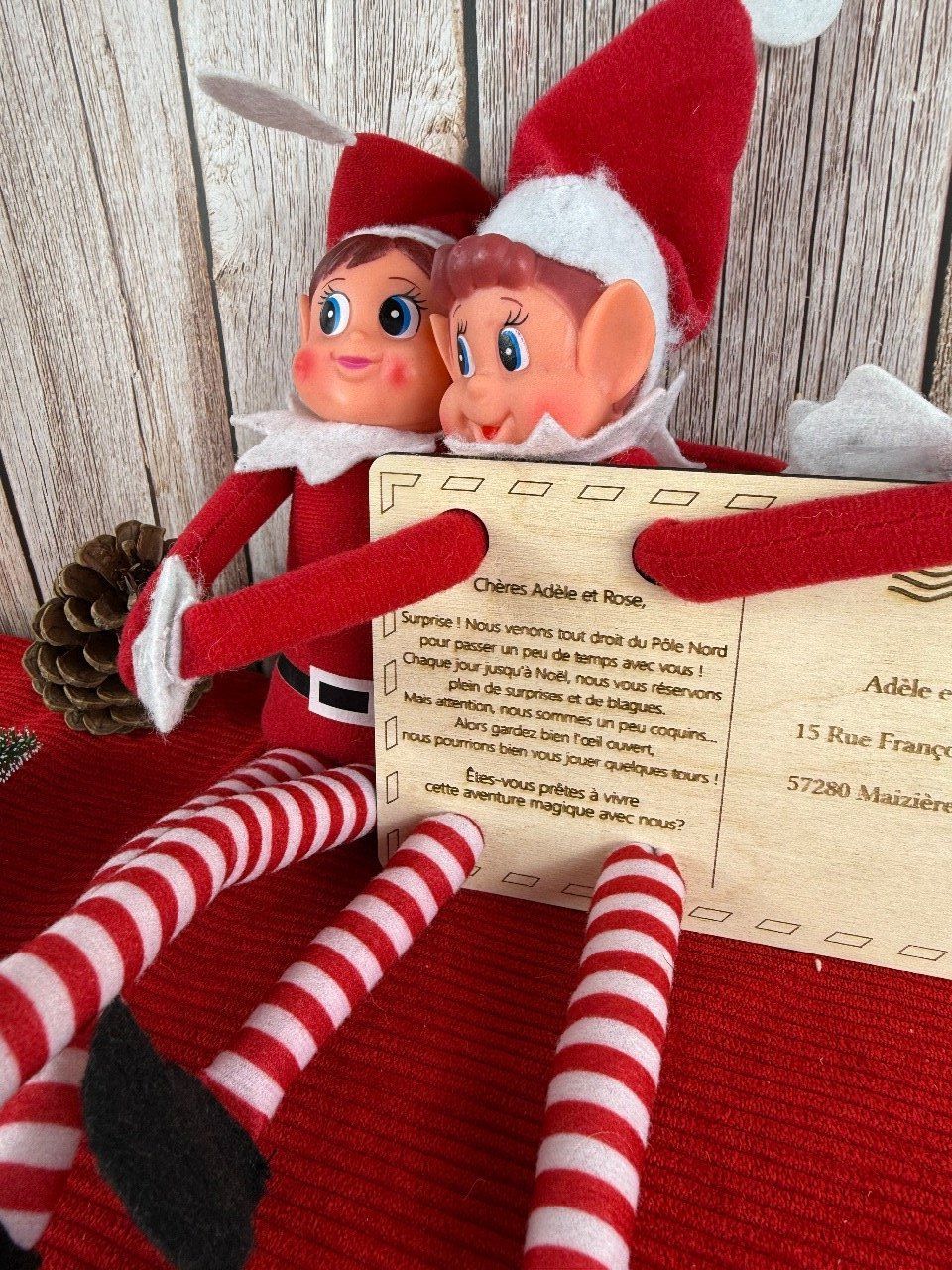 Laissez la magie des fêtes s'installer chez vous avec cette adorable carte postale en bois, parfaite pour annoncer l'arrivée tant attendue des lutins farceurs ! Réalisée avec soin, cette carte en bois au design enchanteur surprendra petits et grands en créant une atmosphère de mystère et d’amusement.